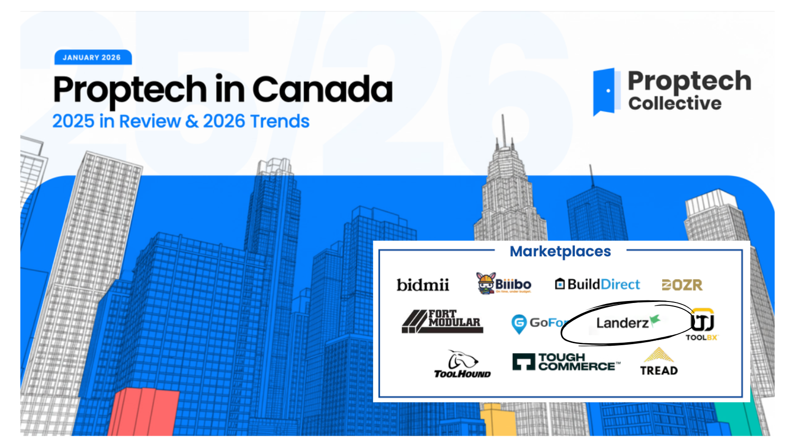 Spécialisée en achat/vente de terrains, la plateforme Landerz est reconnue dans le plus récent rapport Proptech in Canada comme une solution de référence pour les secteurs de la construction ainsi que les marchés de l'immobilier résidentiel et commercial.